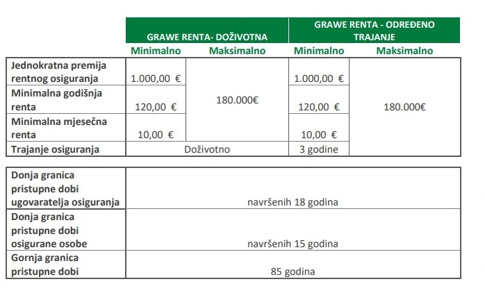 • Grawe Renta doživotna bez isplate neiskorištenog dijela premije