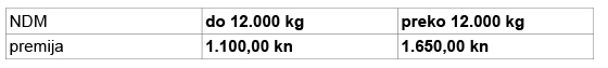 Premija za teretna vozila ovisi o najvećoj dopuštenoj masi vozila (kg):